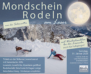 Auf geht`s zum Loser Mondscheinrodeln!